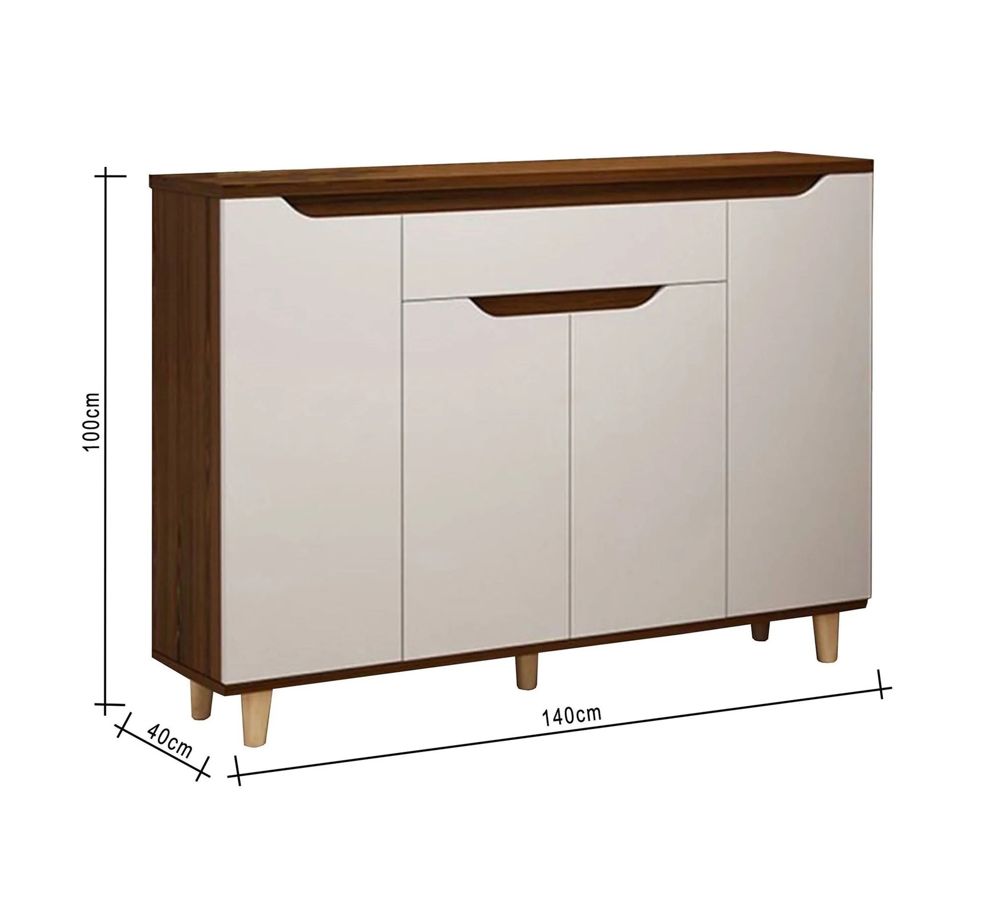 سعة تخزين مذهلة أربعة أبواب مفصلية وثلاثة أرفف داخلية مع درج علوي واسع توفر مساحة منظمة لكل أحذيتك وإكسسواراتك اليومية