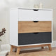 وحدة أدراج بتصميم خشبي أنيق، مصنوعة بخامات عالية الجودة من الخشب ام دي اف اسباني، مما يجعلها متينة وتدوم لفترة طويلة. فهي مزودة بثلاثة أدراج لتسع مساحة للتخزين، كما أنها متوفرة باللون الخشبي مع الأبيض مع الرمادي، احصل عليها وأضف لمسة من الفخامة والأناقة إلى غرفتك.